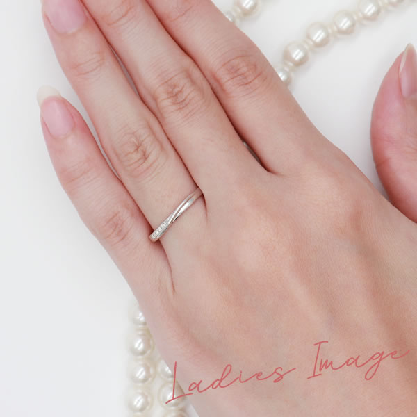 女性用は、女性の憧れ“プラチナ”素材を使用。金属アレルギーになりにくいPt950を使用し日常使いしやすいお作りに。