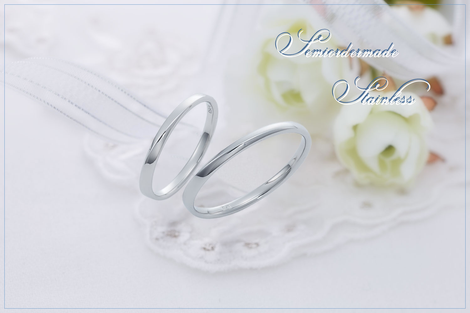 お肌のことを第一に考えた、サージカルステンレス製のセミオーダーメイドの結婚指輪。サイズは1〜30号と、偶数号も対応。無料で刻印をお入れいたします。二人の永遠を誓う結婚指輪に。